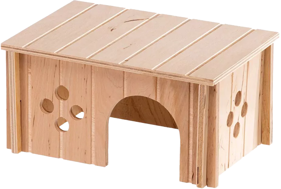 Upřednostňujeme dřevěné domečky, které jsou přirozené, bezpečné a zároveň umožňují křečkům obrušovat zuby.